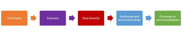 - Synthesize and Prioritize Findings — At this stage, the evaluation is complete, and the analysis can begin. The evaluators come together and discuss their findings. Evaluators will create an aggregate list of all noted violations, discuss and identify potential false alarms, and agree upon severity scoring. If they are validating new heuristics, this is also the point at which they will be doing so.