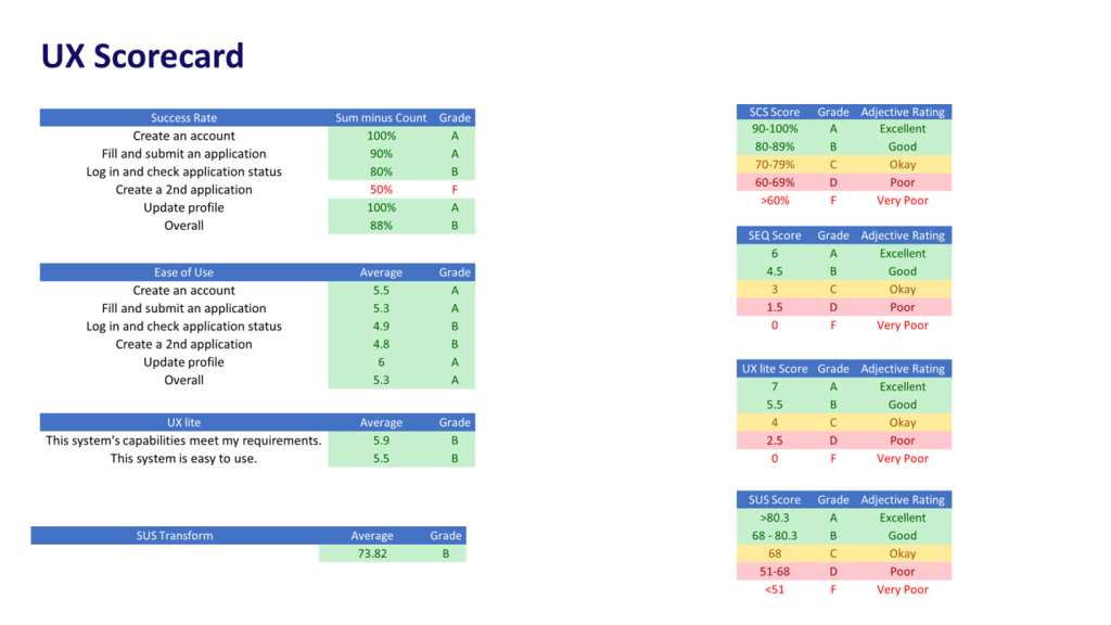 - SEQ (ease 7-pt): Task 3 (status check) 4.9; Task 4 (create 2nd app) 5.2; both highlighted where design changes would yield ROI.
